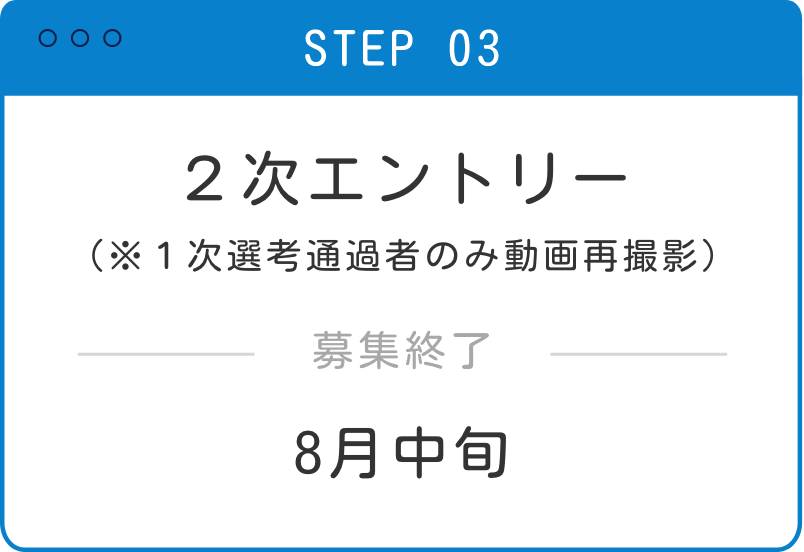 1部門につき1人1回までの応募となります。 応募には個人情報の取り扱いと、お名前・作品・動画のWeb など掲載への承諾が必須となります。