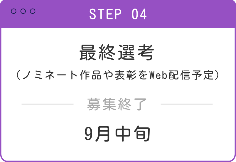 作品エントリー:5月1日〜5月31日 動画エントリー:〜6月30日